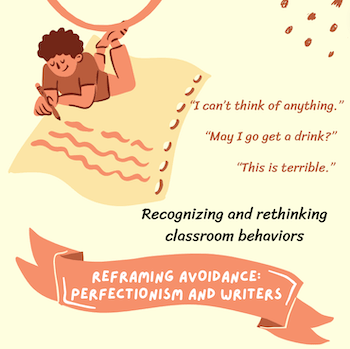 Task-avoidant behavior is as much a part of the writing environment as pencils, sticky notes, and writing journals. Rather than seeing struggles as a lack of motivation or work ethic, students can learn that their behaviors may stem from other causes: namely, the struggles that many writers face. Giving students that knowledge, and the strategies to manage their feelings, goes a long way towards building confidence and self-efficacy in writing.