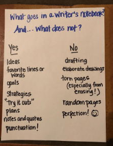 In my experience, many young writers struggle to use a writer’s notebook as a tool. They’re excited to have a notebook but unclear about what to “do” in there. Shared writing can be a powerful way to teach writers how to generate ideas for writing and to get themselves started, based on the books we are reading and discussing as a community.