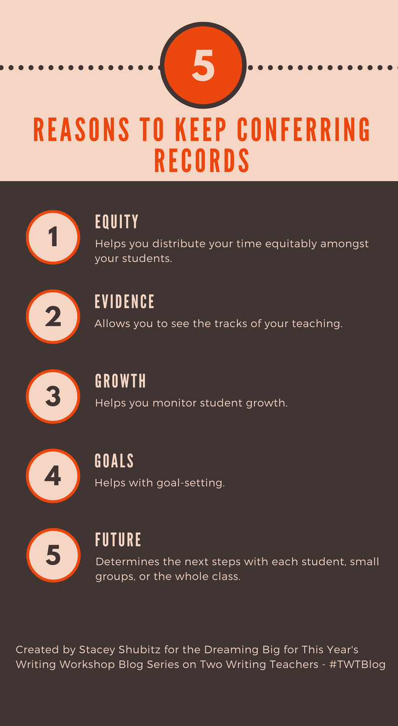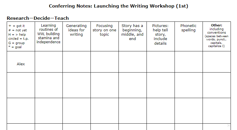 Lucy Calkins, author of many books on teaching writing, often says that conferring is the heart of writing workshop. I once heard her say to a group of graduate students that she wished we called it “conferring workshop.” This way it would be clearer to everybody that it is the conferences that really make the… Continue reading Tailoring Our Teaching: No Need to Wing It If You’ve Got Great Conferring Notes