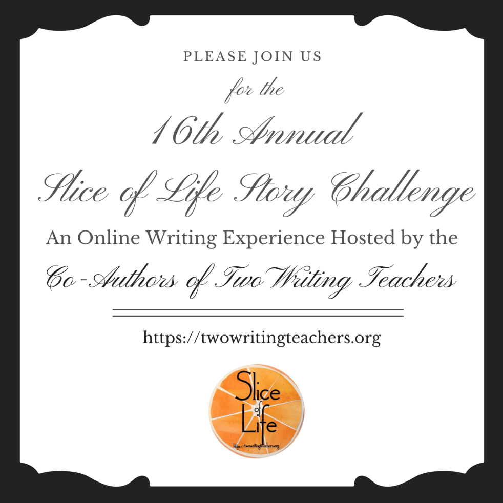 It’s the second day of our 31-day writing challenge. Join us by writing your slice of life story, sharing the link to it in the comments section, and giving comments to at least three other Slicers.