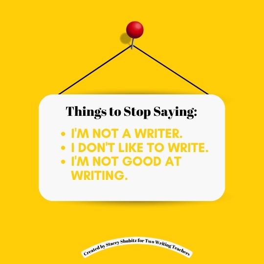 When I think about what I first want my students to know, what matters most to me as a teacher of writing, more than capital letters or topic sentences or punctuation, I want them to believe they have ideas worth sharing and stories worth telling. I want them to know their voice matters and their words can make a difference. I want them to believe they are writers, right now, whatever their reading proficiency, whatever their language background, whatever their home circumstances. WE ARE WRITERS HERE. We all matter, we all belong, we all can and should write.