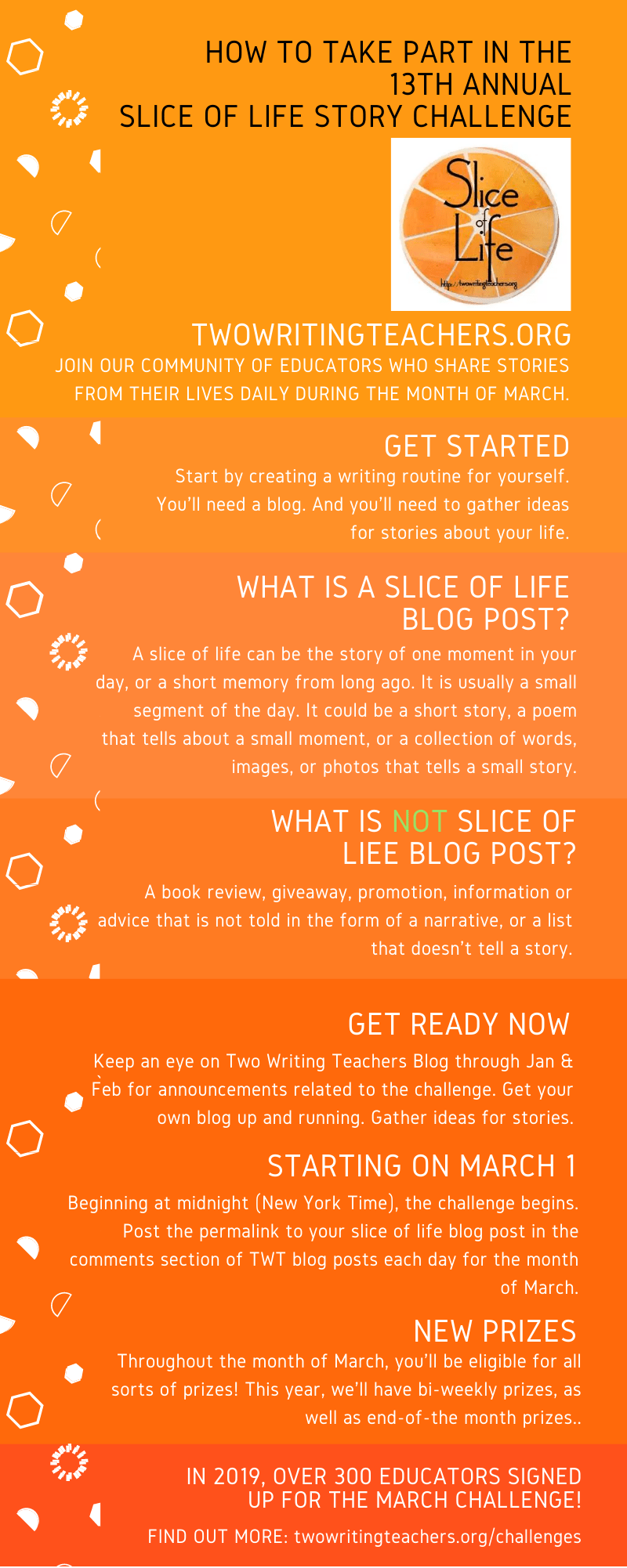 This March, we’ll host the 13th Annual Slice of Life Story Challenge.